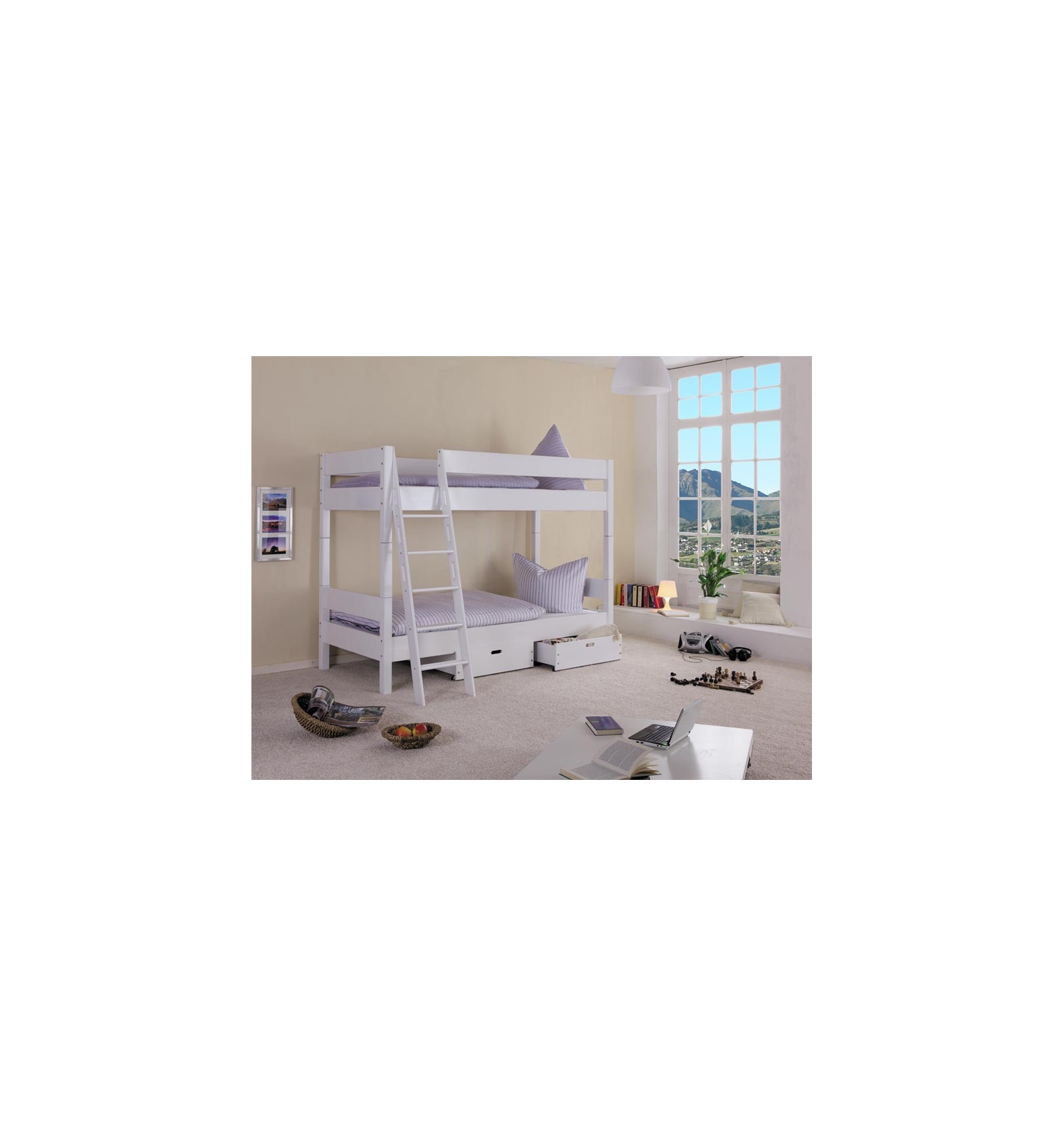 LIT SUPERPOSÉ ELEGANT D’UNE HAUTEUR DE 160 CM AVEC ECHELLE INCLINEE ET LA POSSIBILITÉ D’AJOUTER DES TIROIRS INFÉRIEURS.
